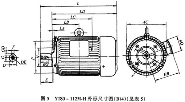 圖4 YT80~112M-H外形尺寸圖(B5)(見表4)