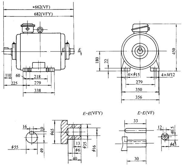 VF系列及其派生系列電動(dòng)機(jī)的電壓有135、150、170、330、360及380V等六種。頻率有4。、45、50、60Hz等四種。功率范圍為3.7~22kW。