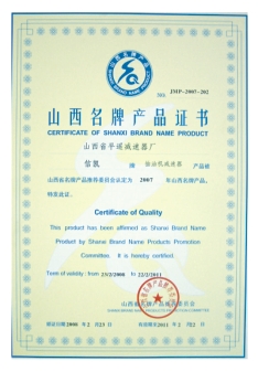 山西省名牌產(chǎn)品證書
