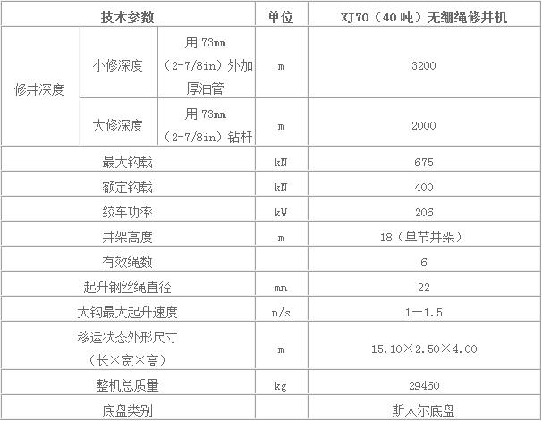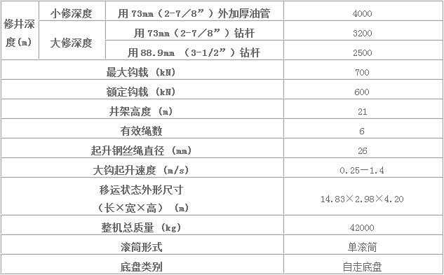 2、XJ700(40噸)無(wú)繃?yán)K修井機(jī)
