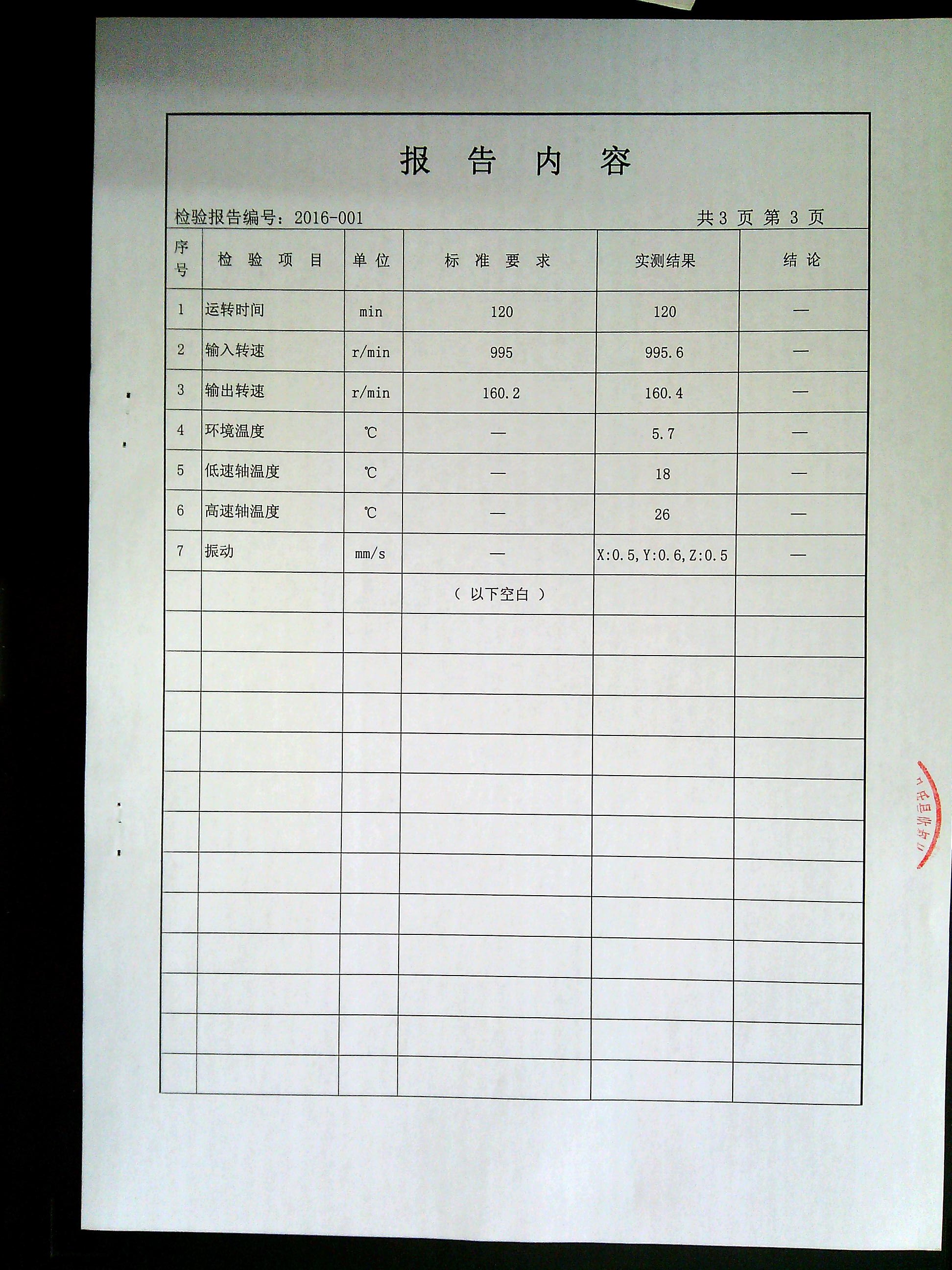 減速機(jī)檢驗(yàn)報(bào)告檢測(cè)報(bào)告