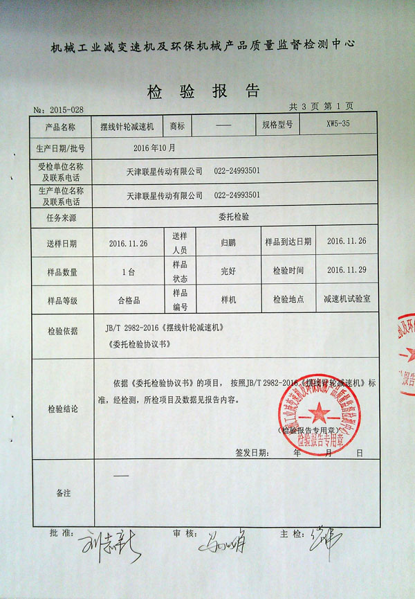>>擺線(xiàn)針輪減速機(jī)檢測(cè)報(bào)告